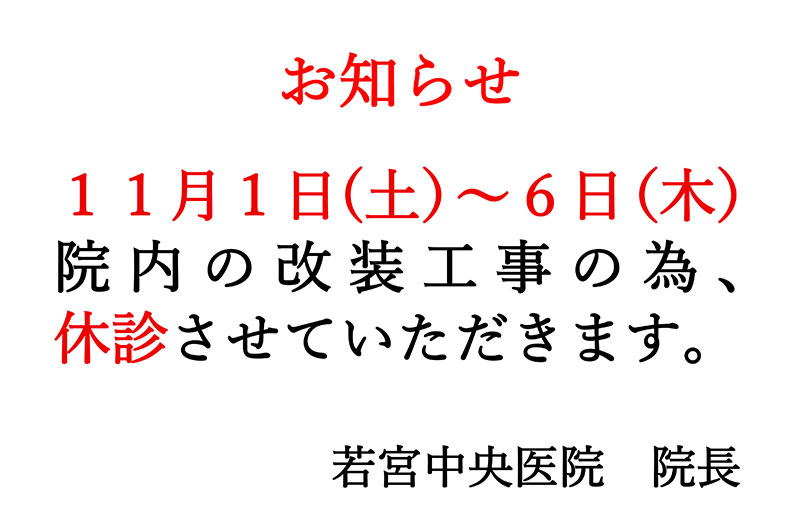 若宮中央医院は、整形外科 脳神経外科 リハビリテーション科 ペインクリニック内科 内科 皮膚科に対応いたします。